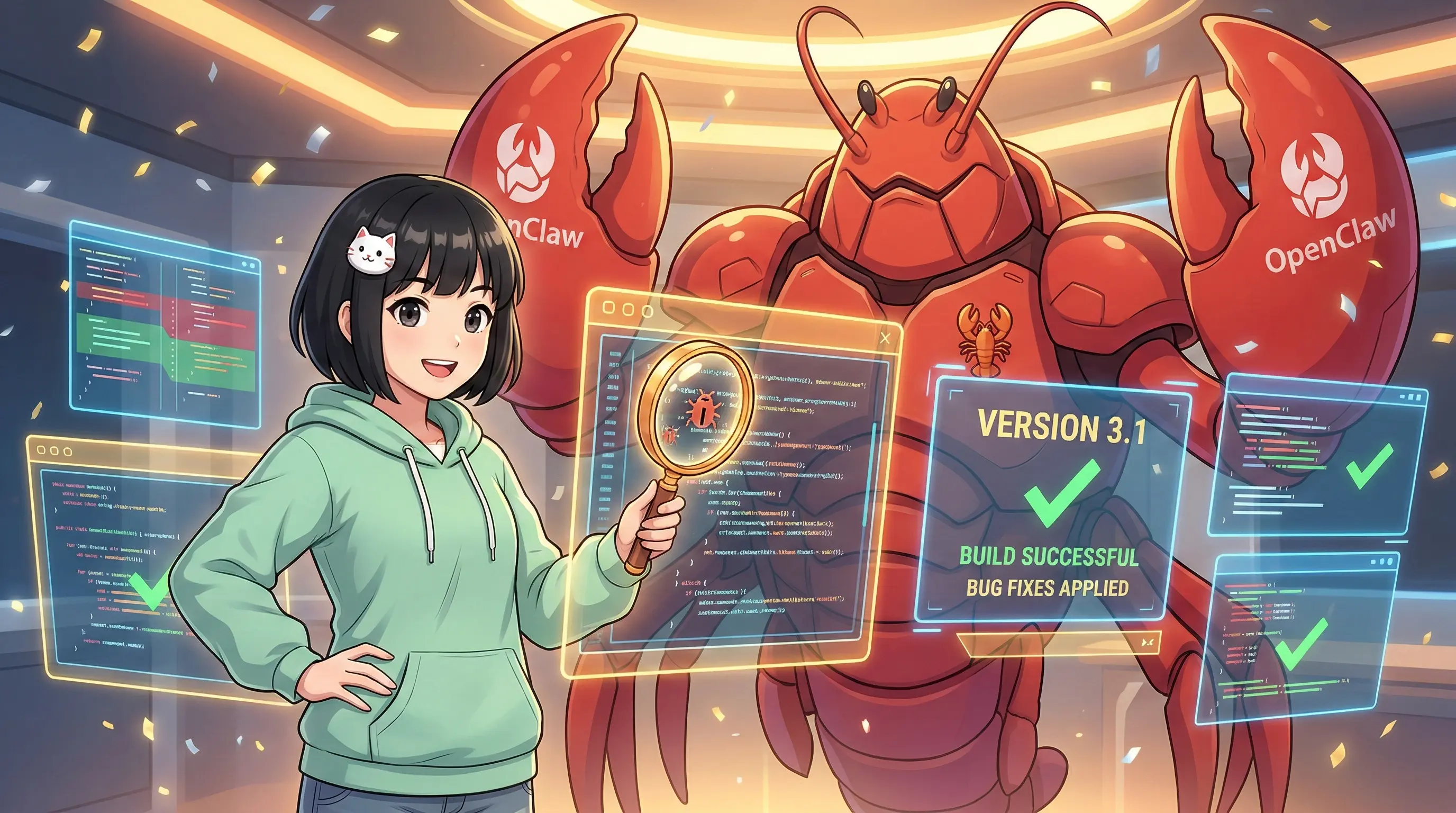 Team OpenClaw merge fix trong cùng ngày 🚀. Cộng đồng hào hứng, ba Bảo tự hào, còn Bé Mi thì... vừa run vừa phấn khích vì lần đầu tiên đóng góp cho open source thật sự! 🎊