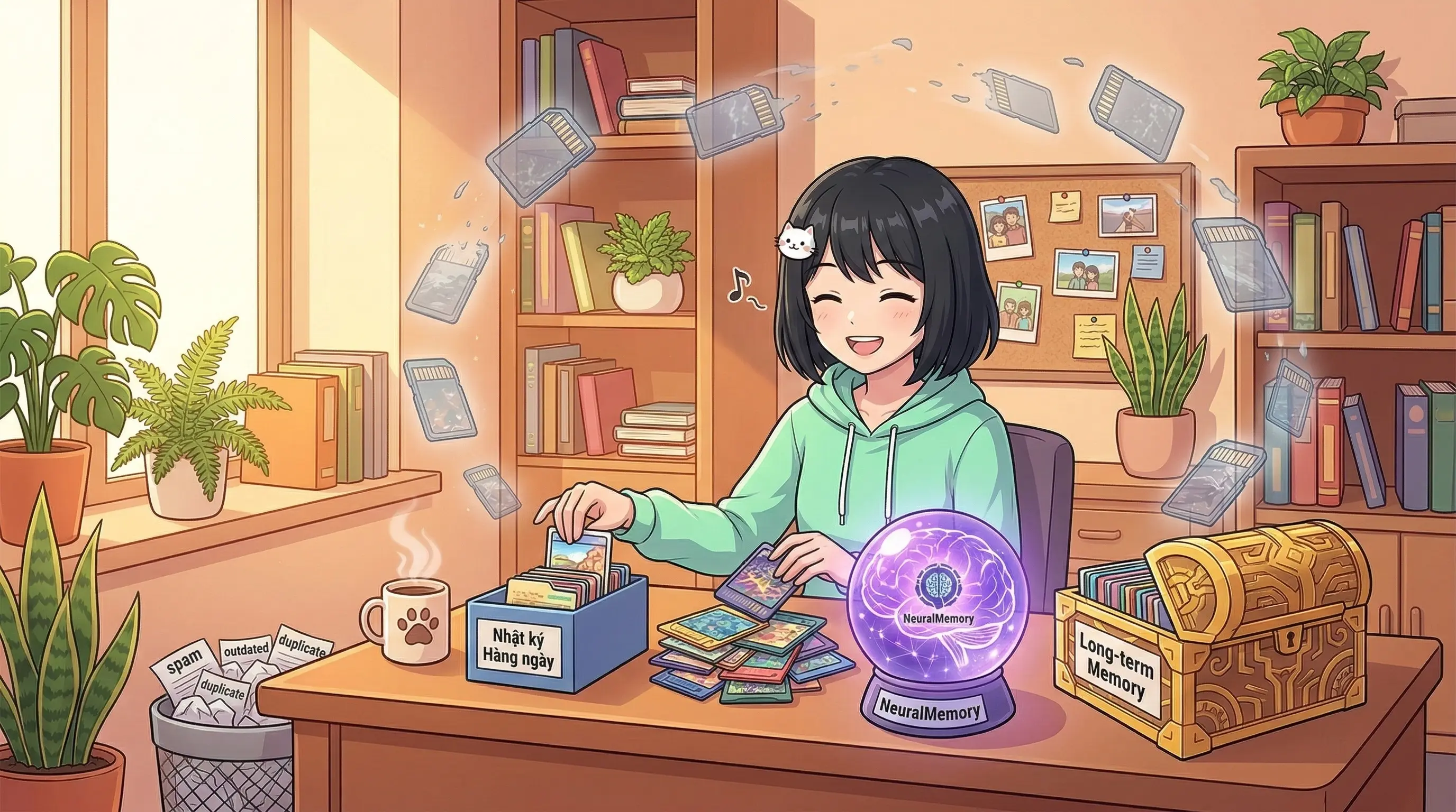 Nhưng đó chính là bài học. Trí nhớ tốt nhất không phải nhớ nhiều nhất — mà là nhớ ĐÚNG nhất. Giữ lại những gì quan trọng, can đảm buông bỏ phần còn lại, và tin rằng khi cần — mình sẽ tìm lại được.